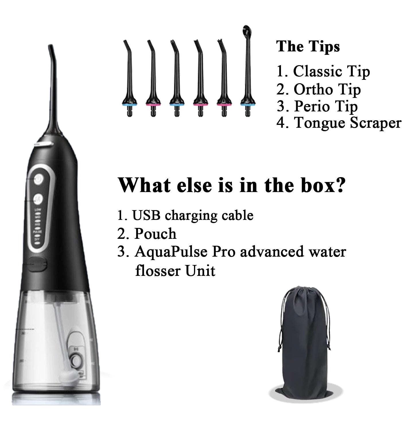 - 1. NexPulse Pro advanced Water Flosser unit.